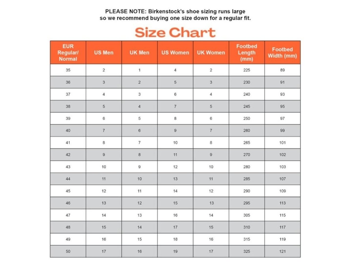 U.S. Size | U.K. Size | EU Size | Foot Length (Inches) | Foot Length (cm) |