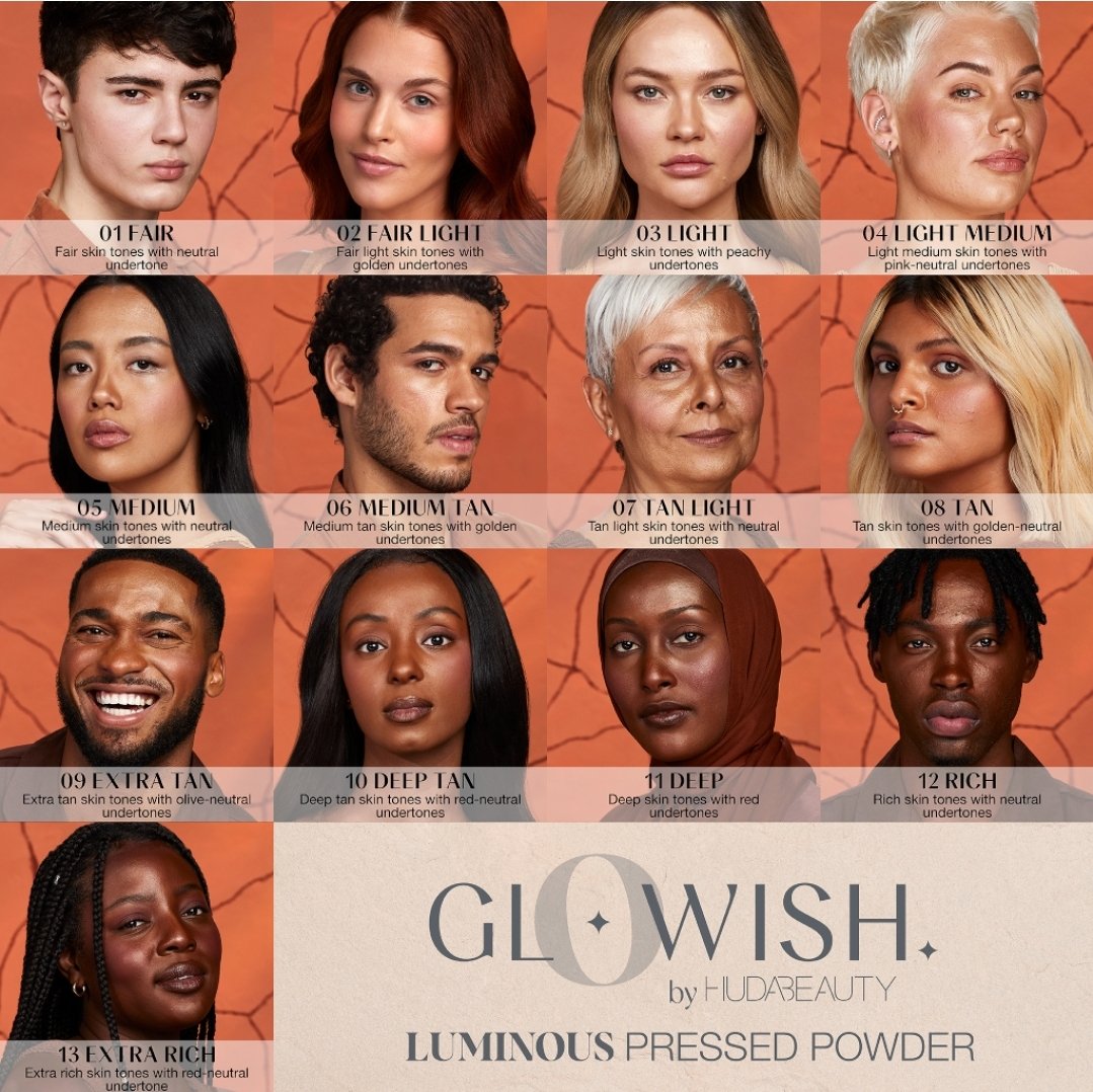 Never be without the coverage that you desire with the Huda Beauty GloWish Luminous Pressed Powder. This innovative, antioxidant-infused, pressed powder is breathable and luminous and lets you build the coverage anywhere from barely there to full.