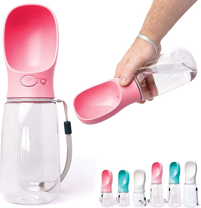 - __ LEAK PROOF DESIGN – You want to know when you carry your pet water bottle for walking, hiking or camping, that it won’t leak. This dog travel accessory has a silicon leak proof seal and a lock button to prevent any spills