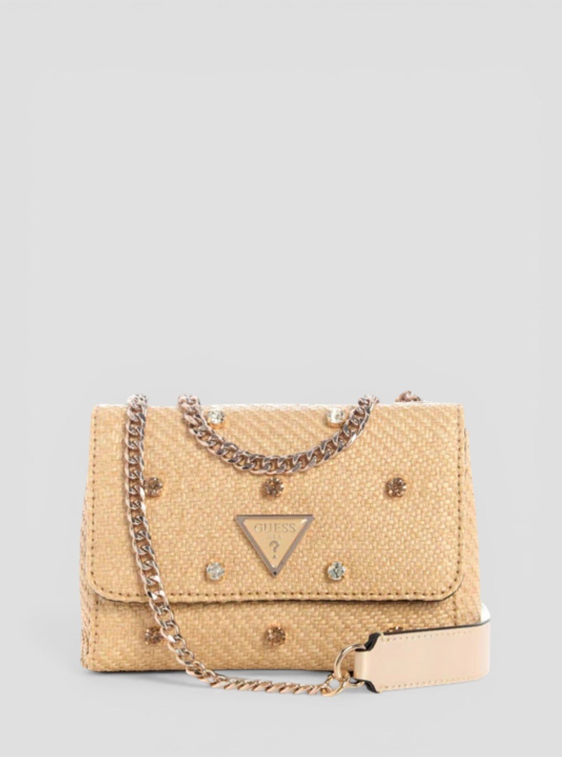 Add a natural, textured finish to your look with the Beige Giully II Mini Convertible Flap Bag. Crafted from a woven-look fabrication, this compact silhouette features dual compartments for organised storage and delicate embellishment detailing for a subtle sparkle. Designed with a chain strap for versatile shoulder or crossbody wear, it’s finished with shiny gold hardware for an elevated touch.