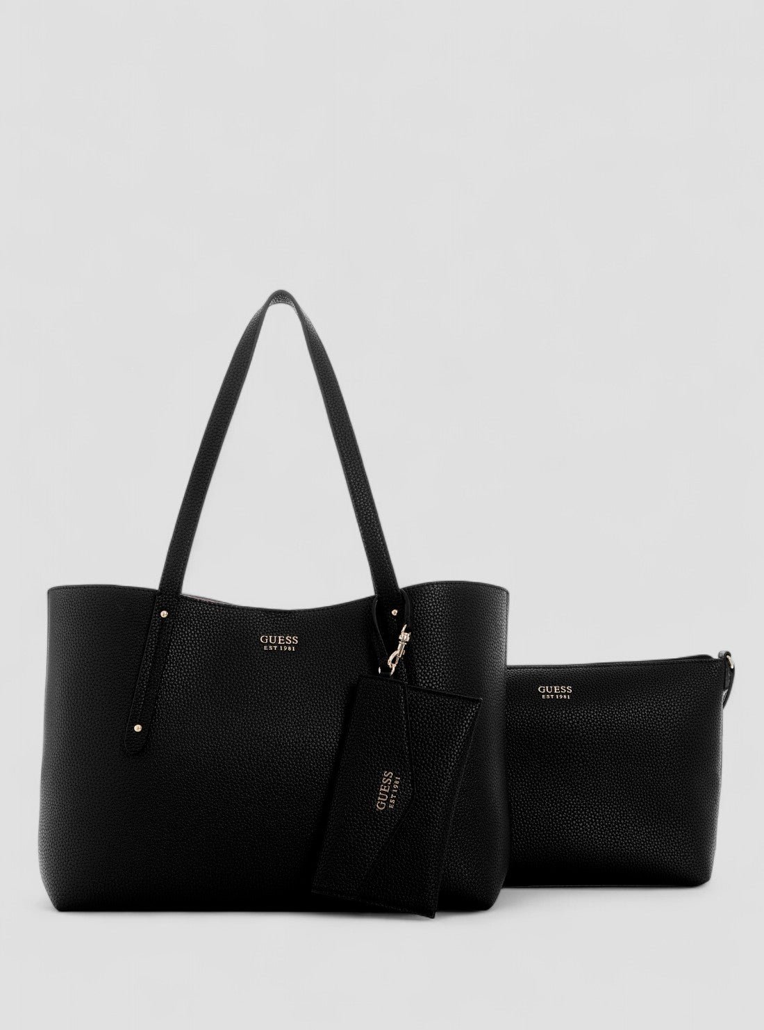Carry your essentials in sophisticated style with the Black Brenton Tote Bag. Designed in eco pebble PU, this versatile tote includes a matching removable pouch for added functionality. With dual shoulder straps, shiny gold hardware, and a detachable logo keychain, it’s the perfect everyday bag for work, travel, or casual outings.