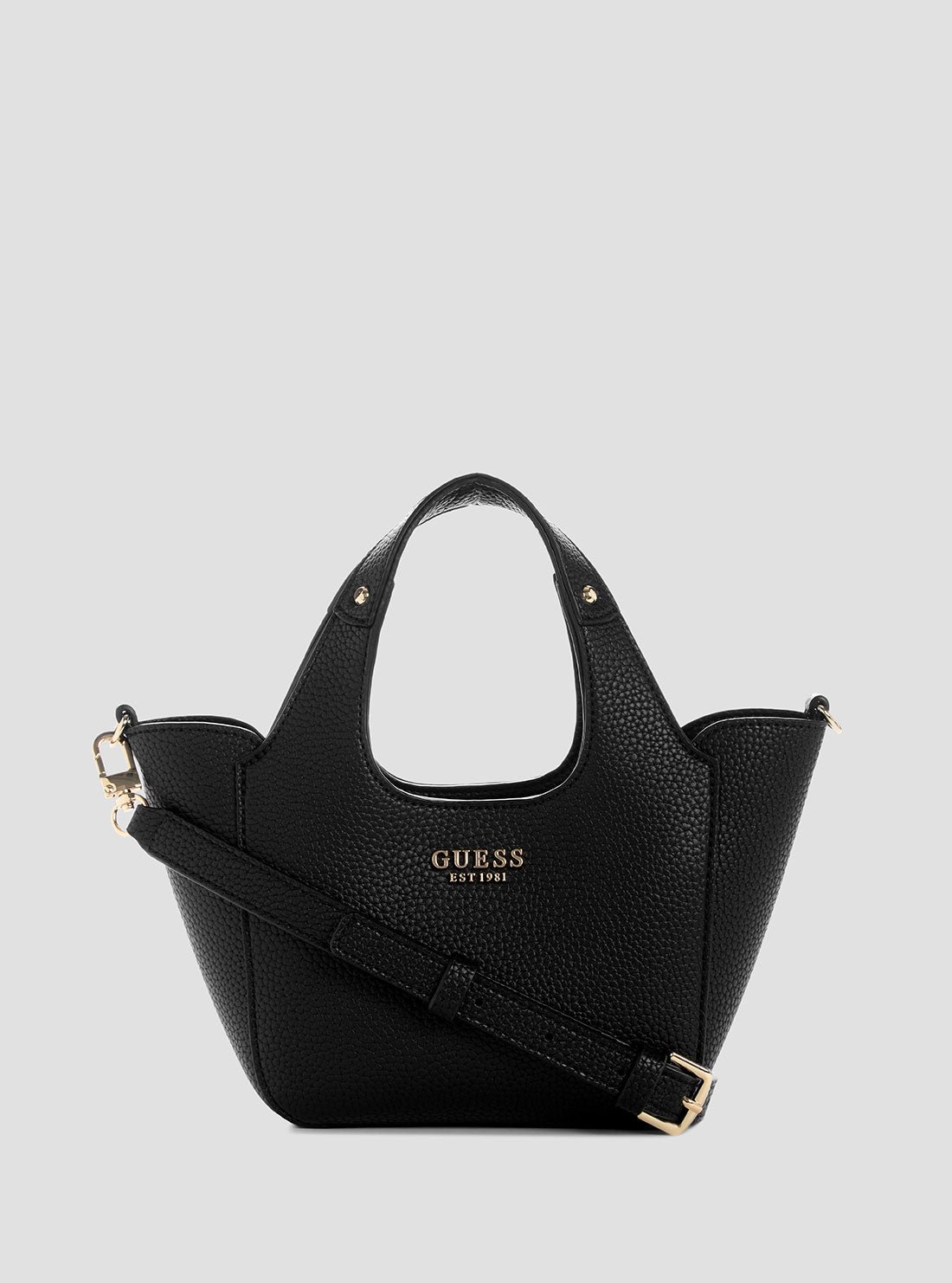 The Black Helina Mini Tote bag is a stylish and versatile accessory designed for any occasion. Crafted from double-faced pebble PU in a sleek black finish, this mini tote offers a refined look with a practical design. It features a secure flap magnetic closure and dual carrying options for added convenience. The included additional pouch provides extra storage, making it a functional yet chic choice. Accented with shiny gold hardware, this bag is a must-have for effortless elegance.
