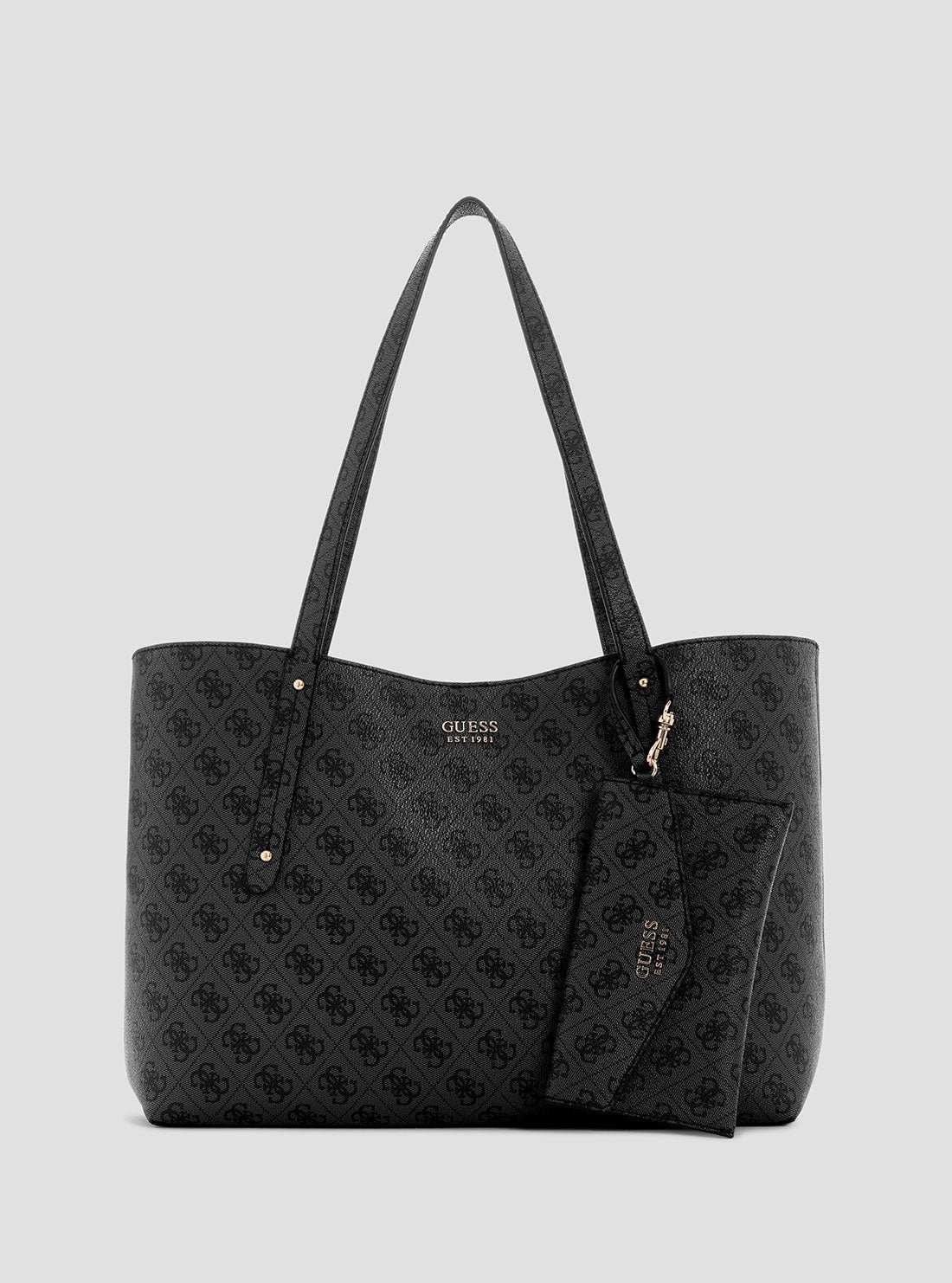 Carry it all with style and ease using our Black Logo Brenton Tote Bag. Featuring dual shoulder straps and a removable pouch, this bag is perfect for any occasion. Made with faux leather and accented with shiny gold hardware. Say goodbye to boring bags and hello to functional fashion.