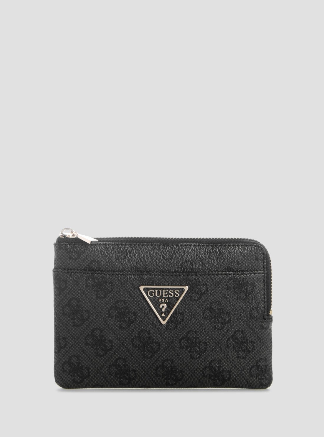 Add a sleek, functional touch to your everyday essentials with the Black Logo Laurel II Key Ring Pouch. Crafted from eco basique PU, this compact pouch features a secure zip-top closure and a streamlined interior ideal for small essentials. Finished with shiny gold hardware and a convenient key ring attachment, it’s perfect for keeping valuables organised on the go.
