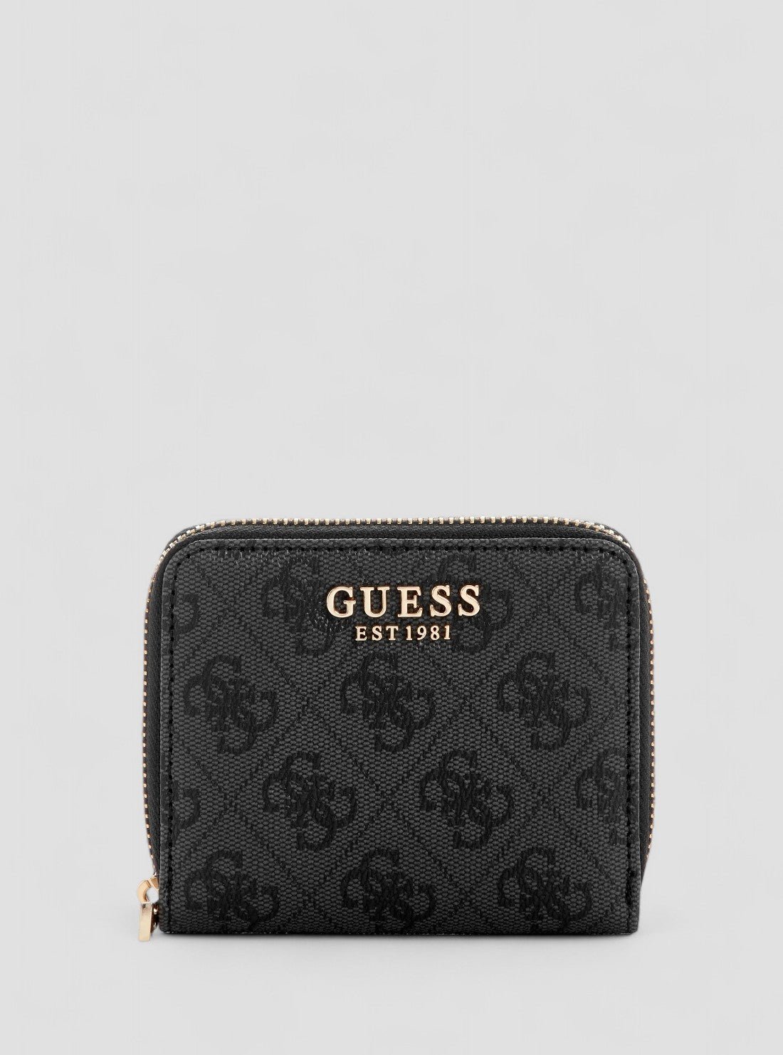 Keep your essentials compact and stylish with the Black Logo Laurel Small Zip Around Wallet. Featuring an all-over logo design, this sleek wallet offers practical storage with multiple slots and a secure zip closure, making it a perfect everyday companion.