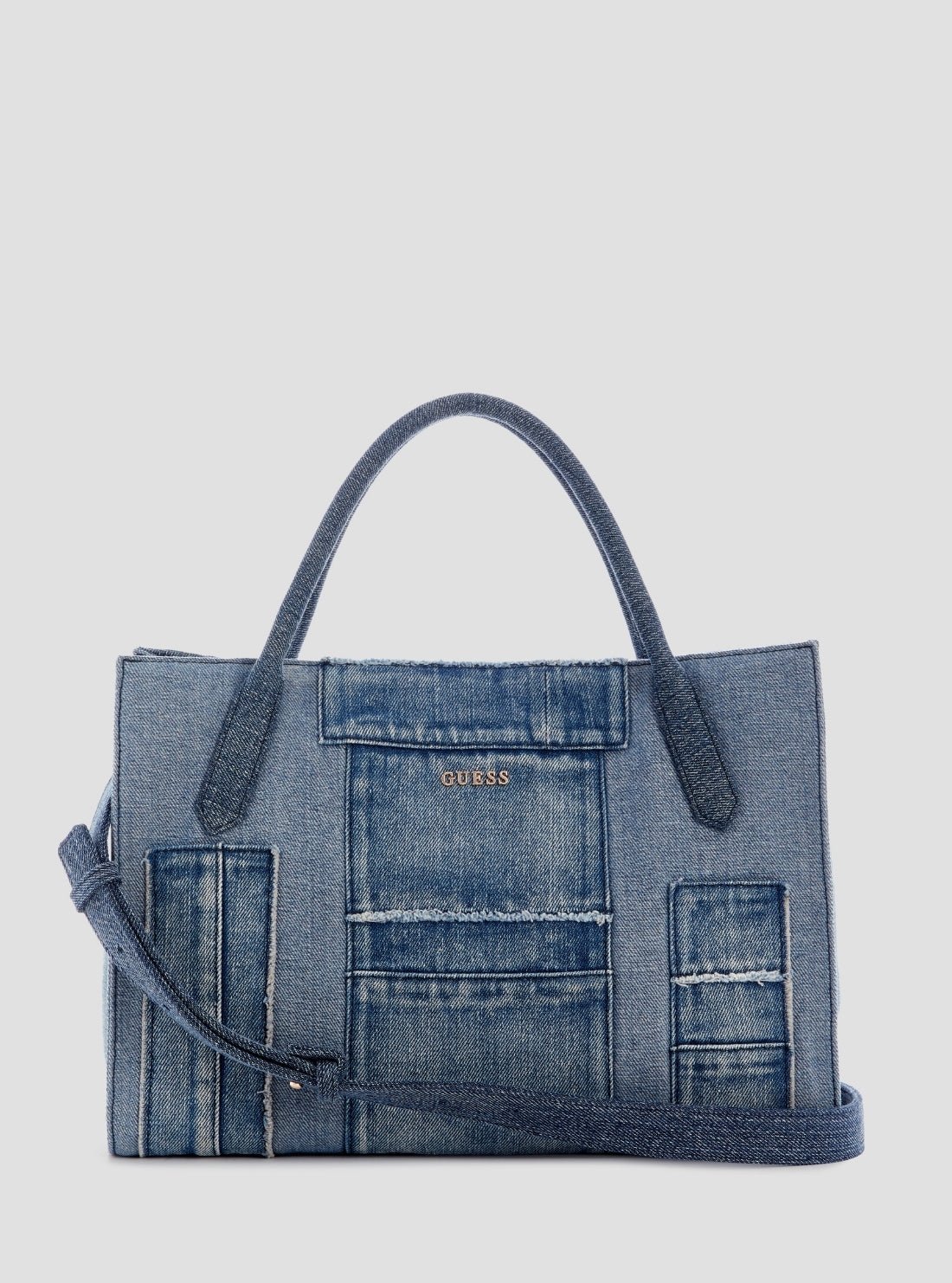 Add a playful, fashion-forward twist to your everyday carry with the Blue Jodi Denim Tote Bag. Crafted from washed denim patchwork, this statement tote features a structured silhouette with contrasting denim panels and comfortable top handles for all-day ease. Finished with shiny gold hardware, it brings a cool, contemporary edge to casual styling.