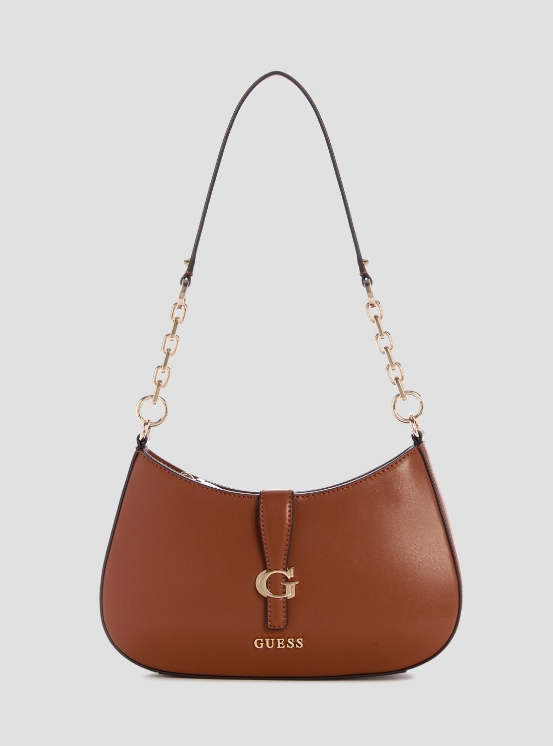 Add a polished finish to your look with the Brown Carrie Top Zip Shoulder Bag. Crafted from smooth eco calf PU, this timeless design features a sleek silhouette with a signature G logo accent and chain-detailed shoulder strap. Perfect for both day and night, it combines effortless elegance with everyday practicality.