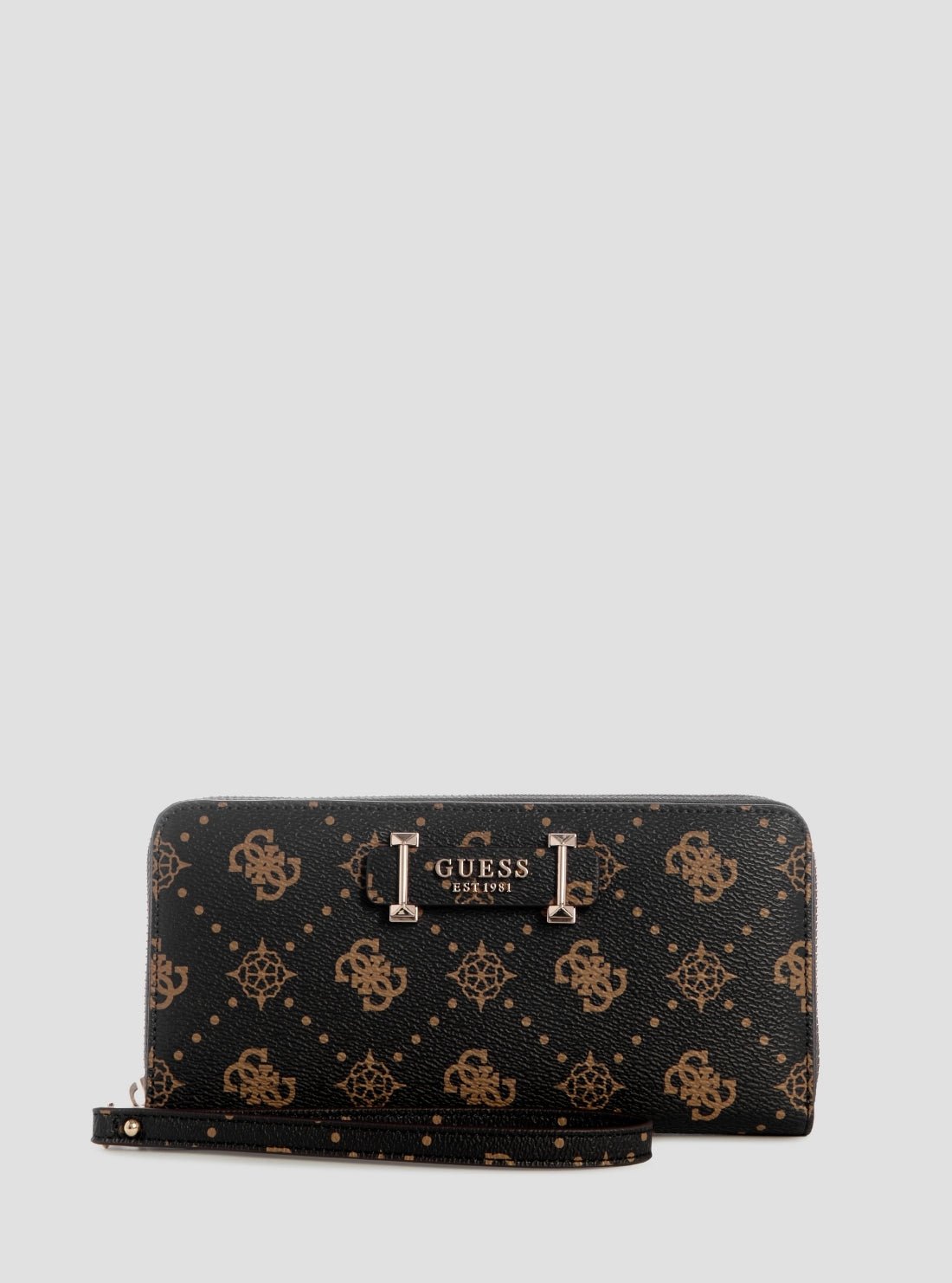 Keep your essentials secure and stylish with the Brown Logo Carrie Large Zip Around Wallet. Crafted from eco 4G Peony logo PU, this spacious design features multiple card slots, slip pockets, and a secure zip closure. Complete with a detachable wrist strap, it’s the perfect everyday companion for on-the-go elegance.