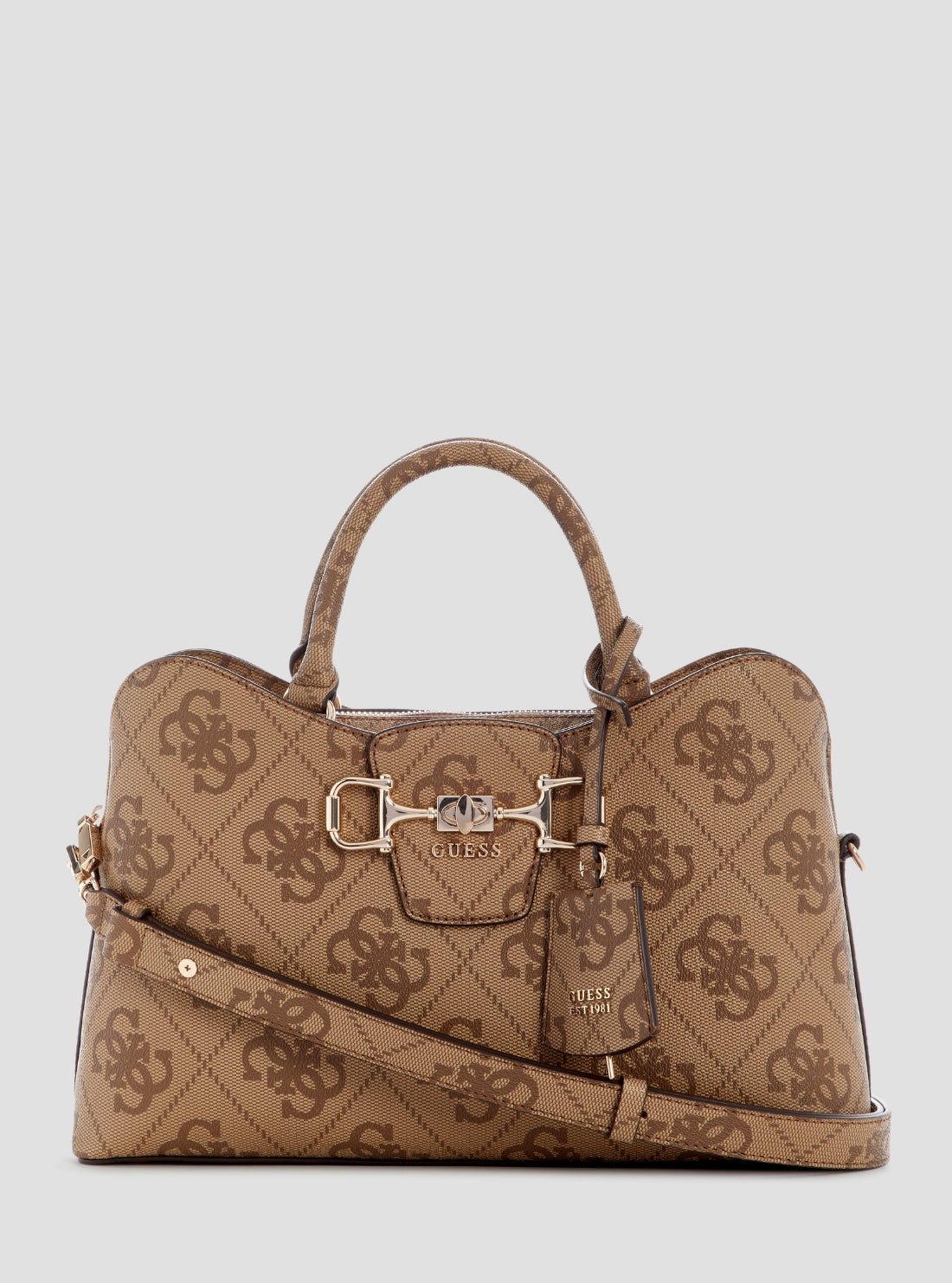 Add a bold, elevated finish to your everyday looks with the Brown Logo Janie Girlfriend Satchel Bag. Crafted from eco big basique PU with an all-over logo finish, this structured design features a classic satchel silhouette accented with statement hardware for a polished, modern feel. Finished with shiny gold hardware, it’s a versatile piece that works seamlessly from workdays to weekends.