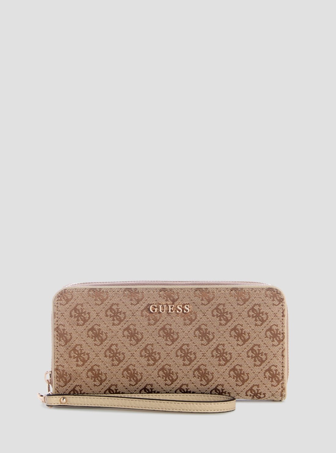 Add a refined, logo-driven finish to your everyday essentials with the Brown Logo Jessa Large Zip Around Wallet. Crafted from 4G logo jacquard, this elegant design features a secure zip-around closure with a spacious, well-organised interior to store cards, notes, and coins with ease. Finished with shiny gold hardware, it’s a timeless and practical choice for daily use.