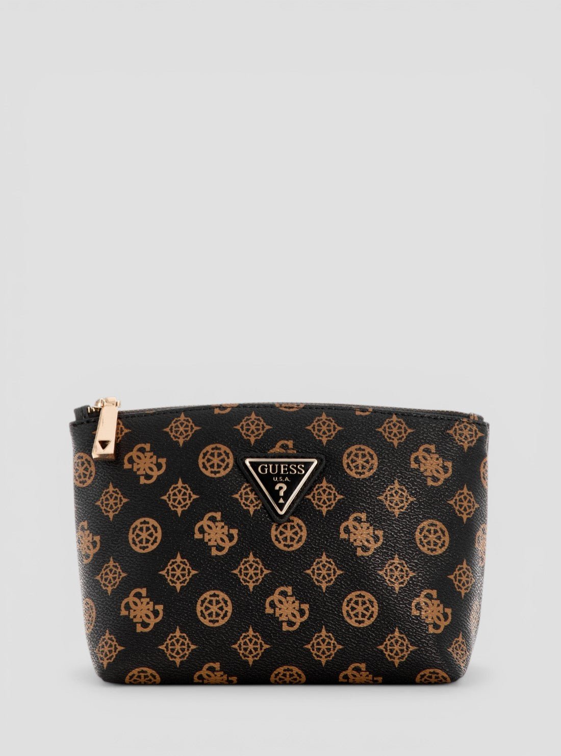 Keep your travel essentials neatly organized with the Brown Logo Wilder Large Top Zip Pouch. Crafted from peony logo PU with smooth PU trim, this compact pouch offers a stylish way to store makeup, toiletries, or small accessories. The top zip closure keeps your items secure, while shiny gold hardware adds a polished touch.