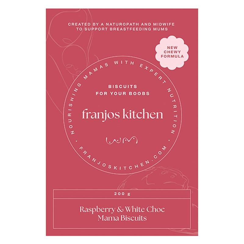 Franjos Kitchen Raspberry and White Choc Mama Biscuits are nutrient-rich, created to help boost and support milk supply for breastfeeding and pumping mums.