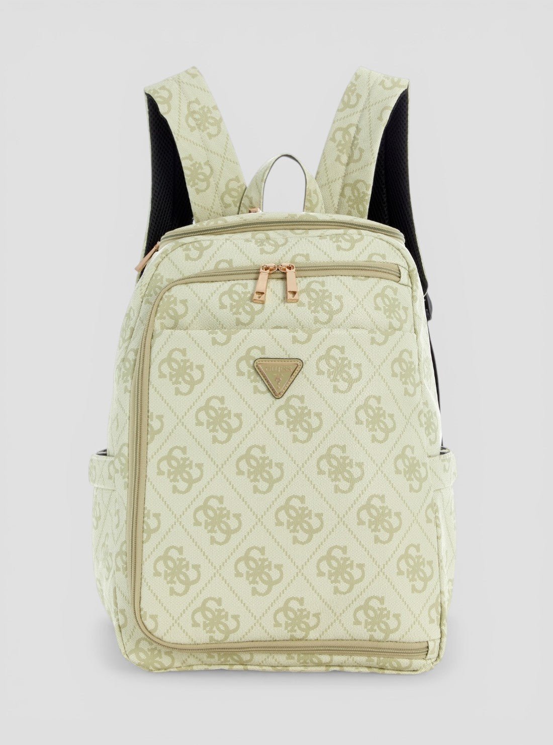 Travel smart in signature style with the Green Logo Berta U-Zip Backpack. Crafted from durable logo-print PU, this spacious design features a U-zip opening for easy access and organised storage of your daily or travel essentials. Finished with adjustable shoulder straps and shiny gold hardware, it’s the perfect blend of practicality and elevated GUESS style.
