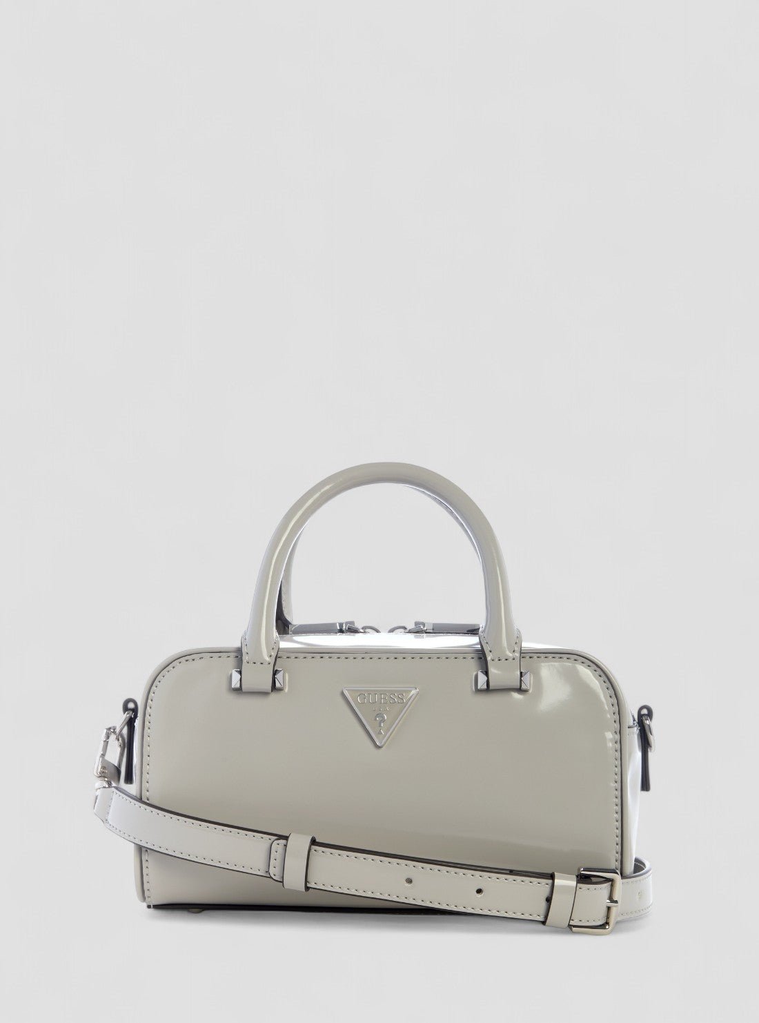 Elevate your accessories collection with the Grey Arnela Mini Satchel Bag. Crafted from smooth PU, this sleek silhouette combines modern polish with everyday functionality. Designed with dual top handles and a detachable crossbody strap, it offers versatile styling from day to night. Finished with shiny silver hardware and the iconic enamel triangle emblem, it’s a chic addition to any wardrobe.