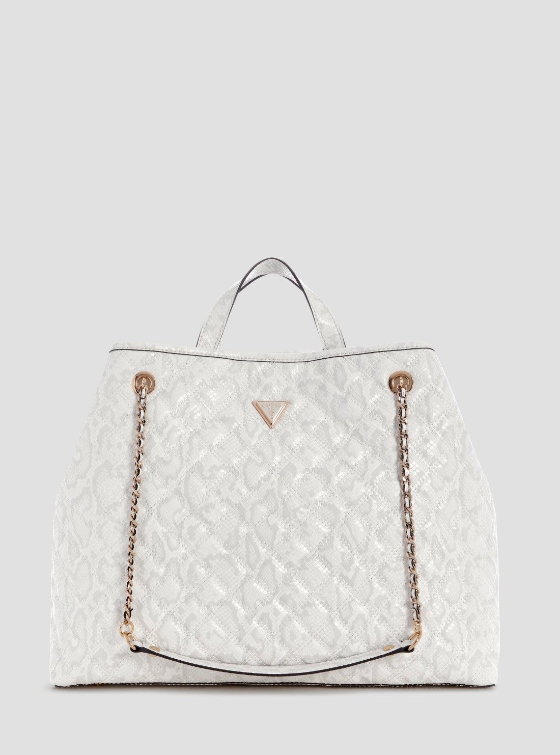 Elevate your everyday carry with the Off-White Giully Large 2 In 1 Tote Bag. Crafted from eco quilted snake PU, this spacious silhouette features a structured design with chain detailing for a refined finish. Complete with a removable inner pouch for added versatility and organisation, it’s the perfect statement tote for work, travel, and beyond.