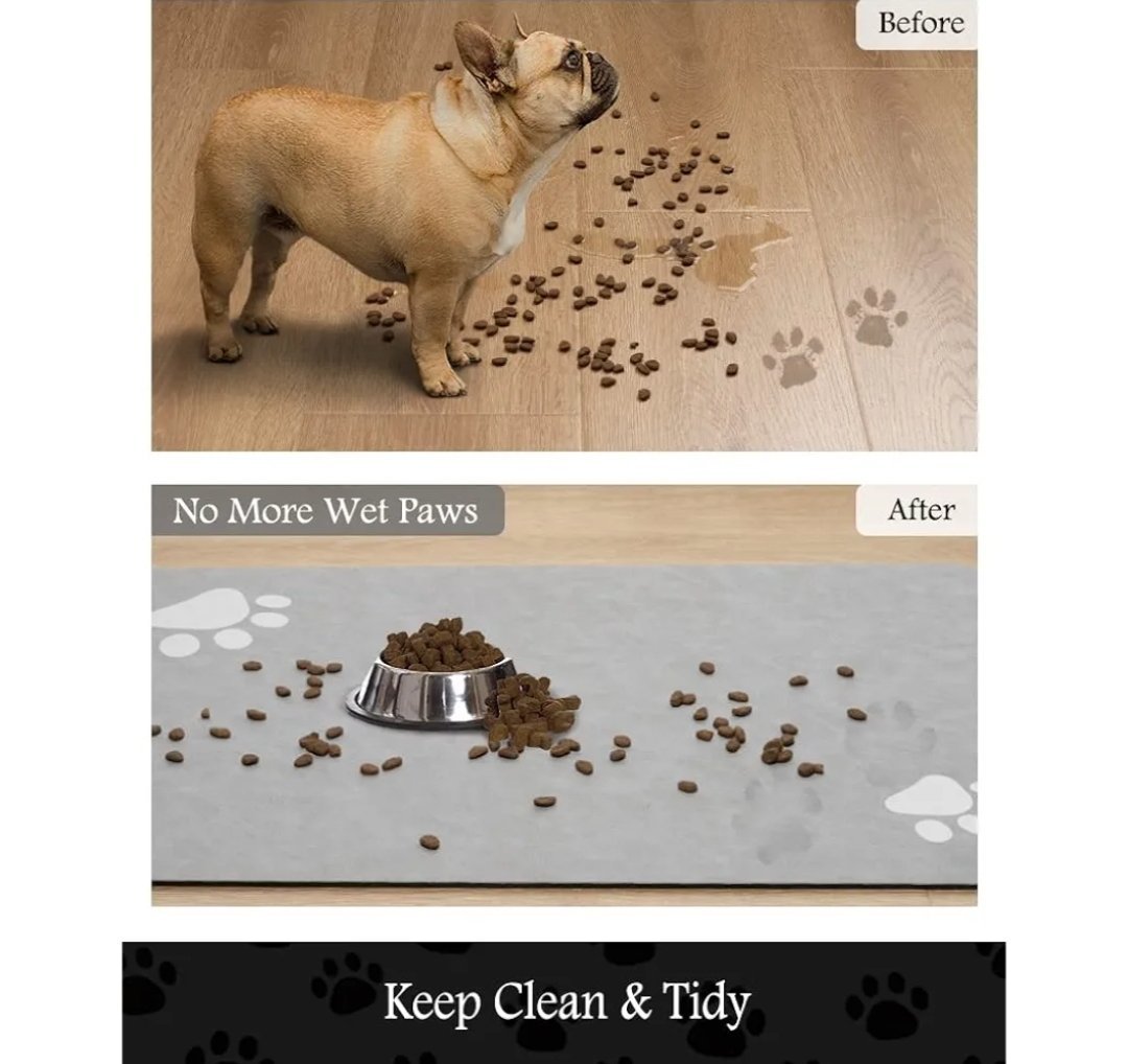- Durable & Absorbent: Perfect pet supplies.This pet food mat can prevent liquid from overflowing. Super absorbent and quick-drying ability to avoid wetting pet paws even for messy drinkers. Sturdy dog & cat food bowl mat cannot be torn easily and avoid eating by mistake. Keep the pet’s eating environment tidy and clean.