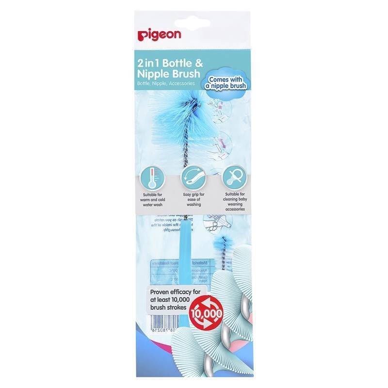 Pigeon 2 in 1 Bottle and Nipple Brush effectively cleans bottles, teats and accessories.
