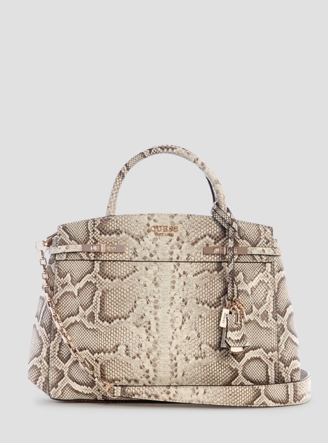 Make a bold statement with the Snakeskin Print Melinda Compartment Satchel Bag. Crafted from eco python PU, this structured silhouette features a spacious triple-compartment interior designed to keep your essentials organised with ease. Finished with shiny gold hardware and refined detailing, it’s the perfect elevated carryall for day-to-night sophistication.