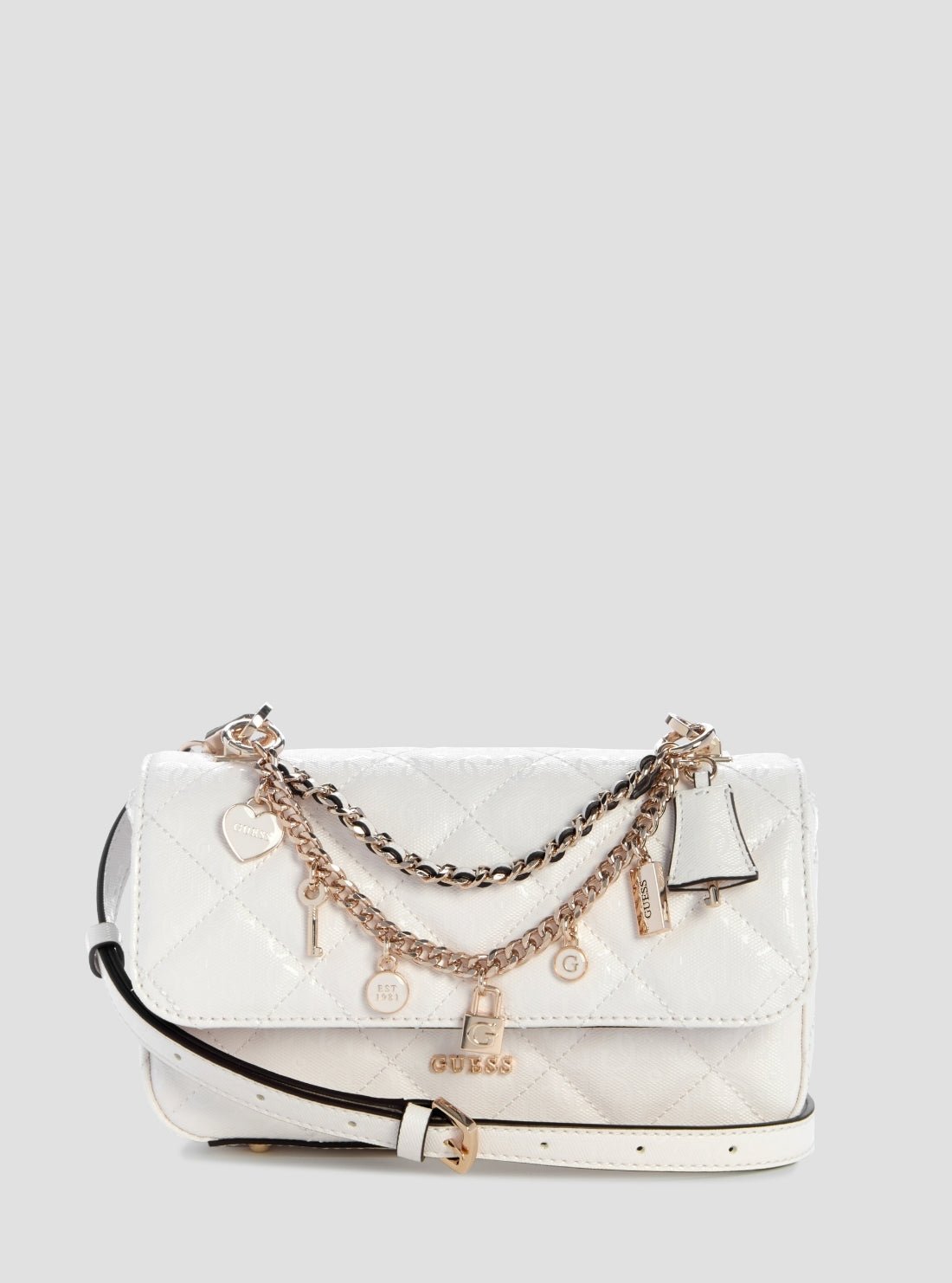 Add a sleek, modern finish to your everyday looks with the White Libby Flap Crossbody Bag. Crafted from smooth PU, this compact design features a flap-front silhouette with a structured shape and polished logo detailing for timeless appeal. Finished with shiny gold hardware, it’s perfect for effortless day-to-night styling.